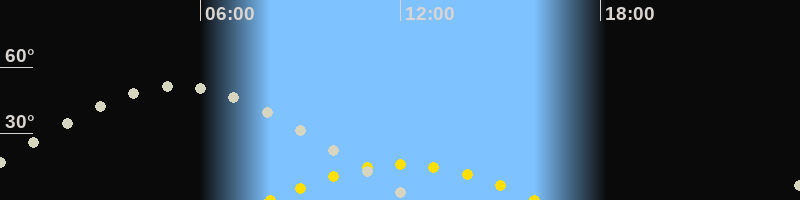 | Höchster Sonnenstand (Kulmination) | 12:05 Uhr (h = 16°) |