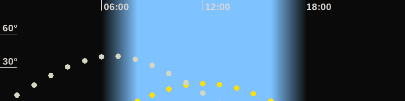 Höchster Sonnenstand (Kulmination)12:06 Uhr (h = 15.9°)