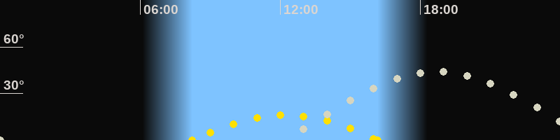 | Höchster Sonnenstand (Kulmination) | 12:12 Uhr (h = 16.2°) |