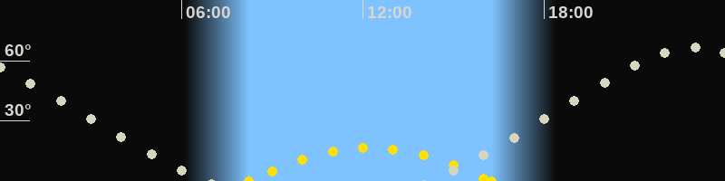 Höchster Sonnenstand (Kulmination)12:15 Uhr (h = 16.6°)