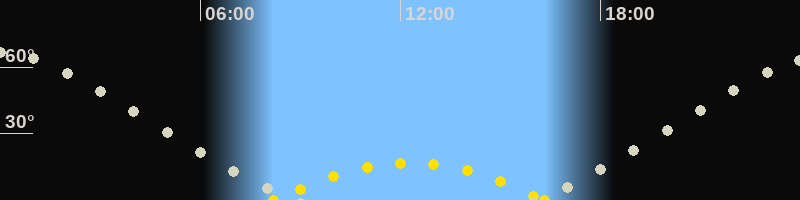 | Höchster Sonnenstand (Kulmination) | 12:16 Uhr (h = 16.8°) |