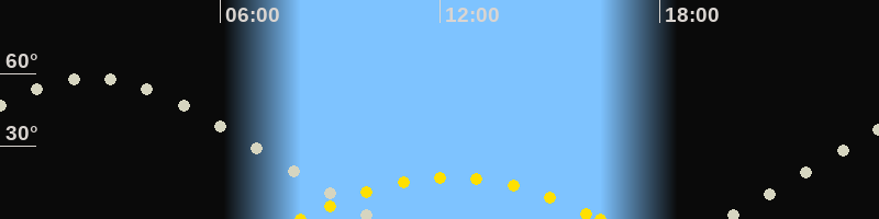 | Höchster Sonnenstand (Kulmination) | 12:17 Uhr (h = 17.2°) |