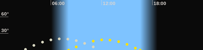 | Höchster Sonnenstand (Kulmination) | 12:19 Uhr (h = 18.4°) |