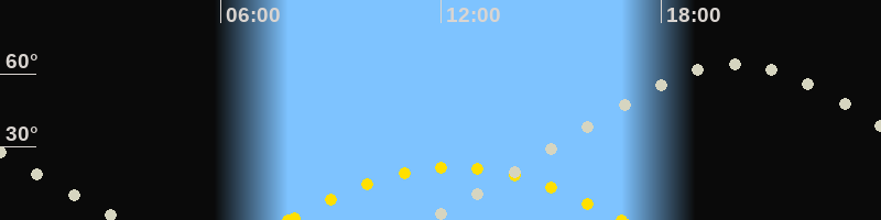 Höchster Sonnenstand (Kulmination)12:23 Uhr (h = 21.7°)