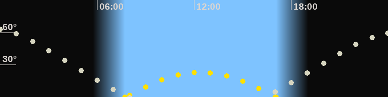 Höchster Sonnenstand (Kulmination)12:24 Uhr (h = 23.2°)