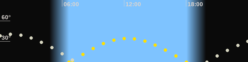 Sonnenuntergang18:01 Uhr im Westen (αAz = 263.4°)