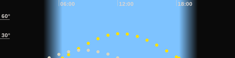 Höchster Sonnenstand (Kulmination)12:18 Uhr (h = 38.1°)