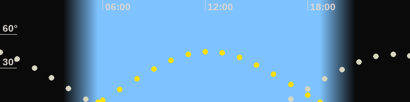 Höchster Sonnenstand (Kulmination)12:13 Uhr (h = 44.8°)