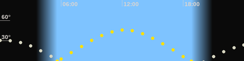 | Höchster Sonnenstand (Kulmination) | 12:12 Uhr (h = 45.9°) |