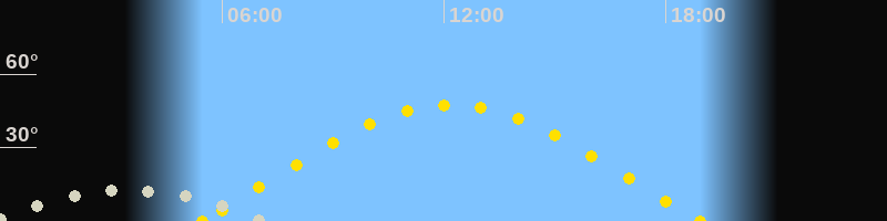 | Sonnenaufgang | 05:28 Uhr im Osten (αAz = 76.6°) |