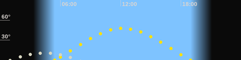 | Höchster Sonnenstand (Kulmination) | 12:11 Uhr (h = 47.8°) |