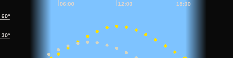 | Höchster Stand (Kulmination) | 09:00 Uhr (h=24.3°) |