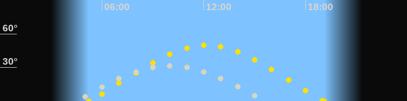 Höchster Sonnenstand (Kulmination)12:09 Uhr (h = 49.9°)