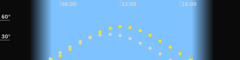 | Sonnenaufgang | 05:11 Uhr im Osten (αAz = 72°) |