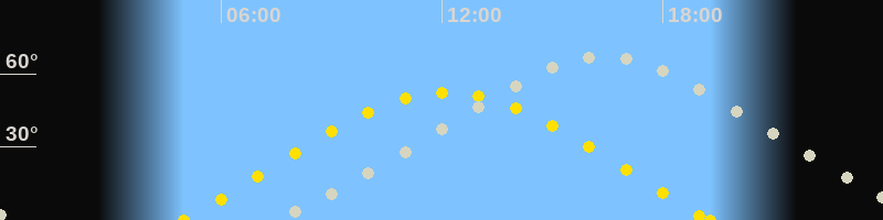 | Sonnenaufgang | 04:59 Uhr im Osten (αAz = 68.6°) |