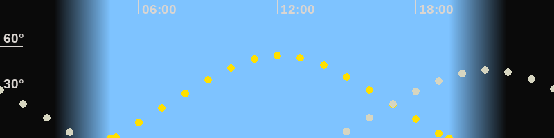 Höchster Sonnenstand (Kulmination)12:07 Uhr (h = 54.2°)