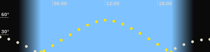 | Sonnenaufgang | 04:40 Uhr im Nordosten (αAz = 63.4°) |