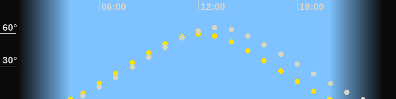 | Höchster Sonnenstand (Kulmination) | 12:06 Uhr (h = 59.3°) |