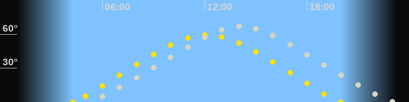 | Höchster Sonnenstand (Kulmination) | 12:06 Uhr (h = 59.5°) |
