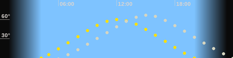 | Höchster Sonnenstand (Kulmination) | 12:06 Uhr (h = 59.7°) |