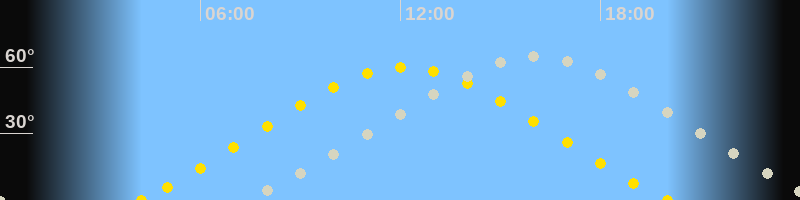 | Höchster Sonnenstand (Kulmination) | 12:07 Uhr (h = 59.9°) |