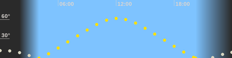 | Höchster Sonnenstand (Kulmination) | 12:08 Uhr (h = 61.8°) |