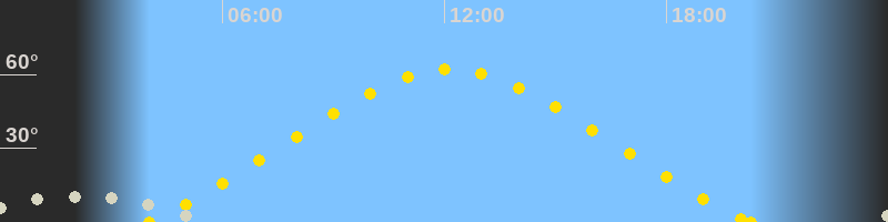Höchster Sonnenstand (Kulmination)12:09 Uhr (h = 62°)
