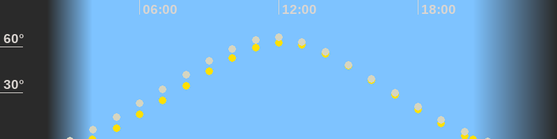 | Höchster Sonnenstand (Kulmination) | 12:11 Uhr (h = 62.7°) |