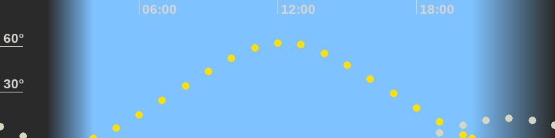 | Höchster Sonnenstand (Kulmination) | 12:14 Uhr (h = 62.4°) |