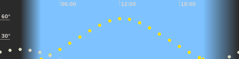 | Höchster Sonnenstand (Kulmination) | 12:14 Uhr (h = 62°) |
