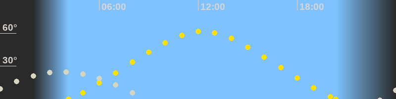 Höchster Sonnenstand (Kulmination)12:15 Uhr (h = 61.8°)