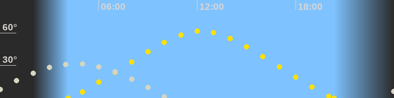 | Höchster Sonnenstand (Kulmination) | 12:15 Uhr (h = 61.7°) |