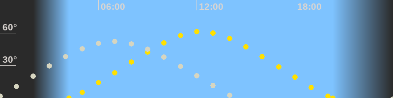 | Höchster Sonnenstand (Kulmination) | 12:15 Uhr (h = 61.3°) |