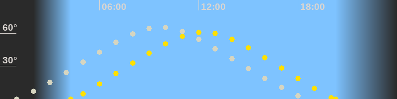 | Höchster Sonnenstand (Kulmination) | 12:16 Uhr (h = 60.9°) |