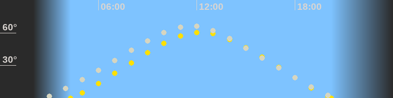 | Höchster Sonnenstand (Kulmination) | 12:16 Uhr (h = 60.6°) |