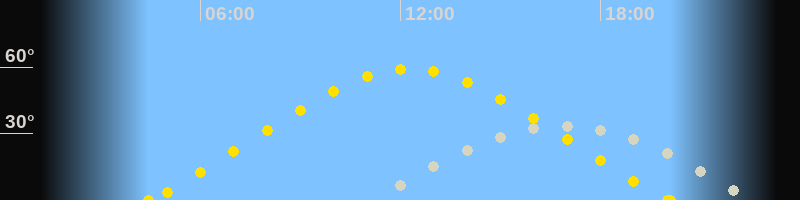 | Höchster Sonnenstand (Kulmination) | 12:16 Uhr (h = 59.2°) |