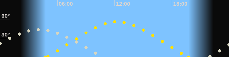 | Höchster Sonnenstand (Kulmination) | 12:16 Uhr (h = 55.8°) |