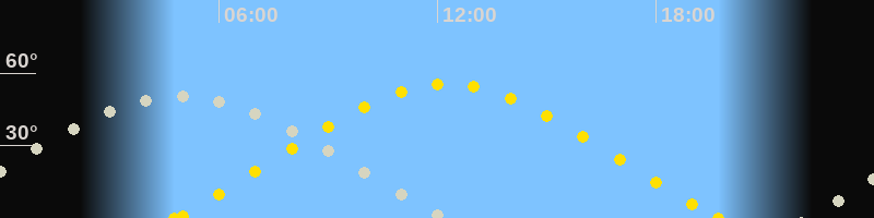 | Sonnenaufgang | 04:47 Uhr im Nordosten (αAz = 62.8°) |
