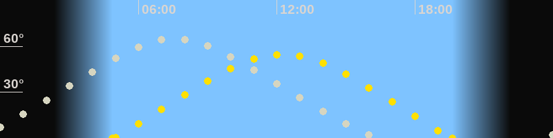 | Höchster Stand (Kulmination) | 07:30 Uhr (h=64.9°) |
