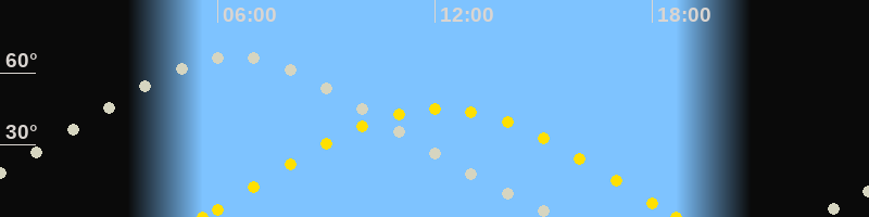 | Höchster Stand (Kulmination) | 06:24 Uhr (h=66.7°) |