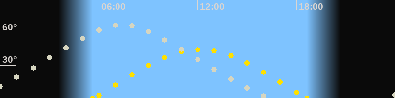 | Höchster Stand (Kulmination) | 07:23 Uhr (h=67.3°) |