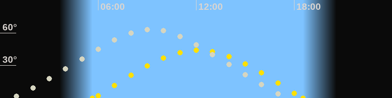 | Höchster Sonnenstand (Kulmination) | 12:07 Uhr (h = 44°) |