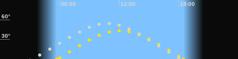 | Höchster Sonnenstand (Kulmination) | 12:06 Uhr (h = 43.3°) |