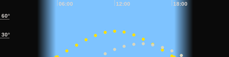 | Sonnenaufgang | 05:51 Uhr im Osten (αAz = 86.4°) |