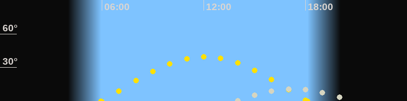 | Sonnenaufgang | 05:56 Uhr im Osten (αAz = 88.3°) |