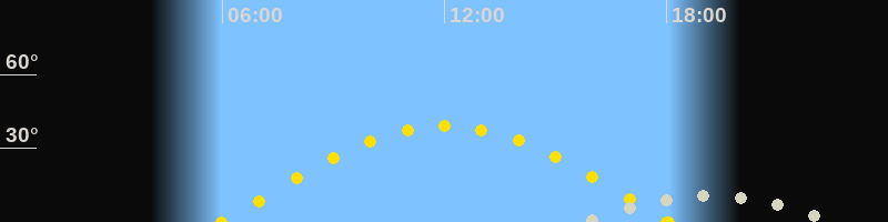 | Sonnenaufgang | 05:59 Uhr im Osten (αAz = 89.5°) |