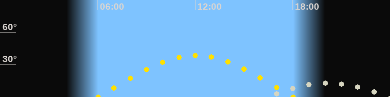 Monduntergang23:51 Uhr im Südwesten (αAz = 227.7°)
