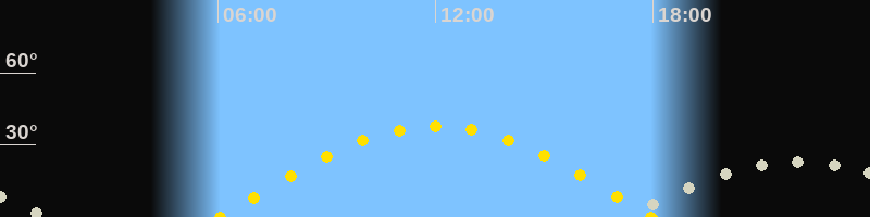 | Sonnenaufgang | 06:04 Uhr im Osten (αAz = 91.4°) |