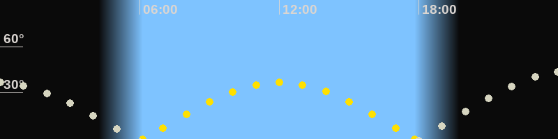 Höchster Sonnenstand (Kulmination)12:00 Uhr (h = 36.7°)