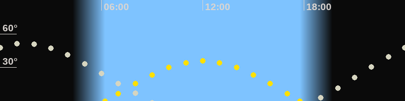 | Höchster Sonnenstand (Kulmination) | 11:59 Uhr (h = 35.9°) |